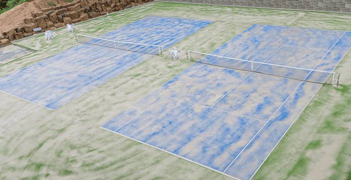앞/뒤/옆 여백 공간을 충분히 뺀 광활한 테니스장입니다.